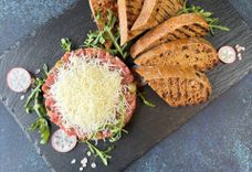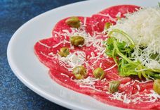 Говяжья вырезка, каперсы, оливковое масло, руккола, пармезан, лимон 180 гр