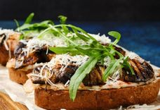 Ржаная чиабатта, сливочный сыр, шампиньоны, бекон, пармезан и руккола 220 гр