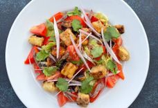 Баклажаны, анчоусы, айсберг, перец маринованный, томат, лук, кинза, сладкий чили 325 гр